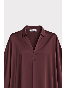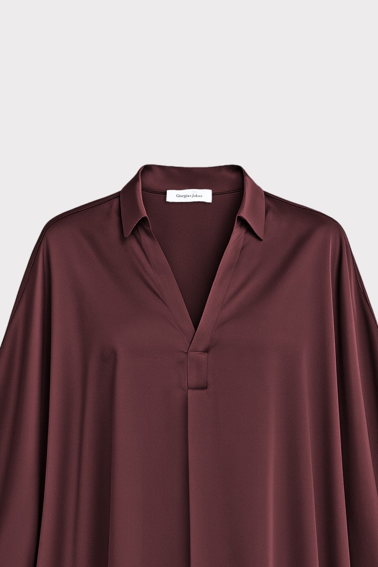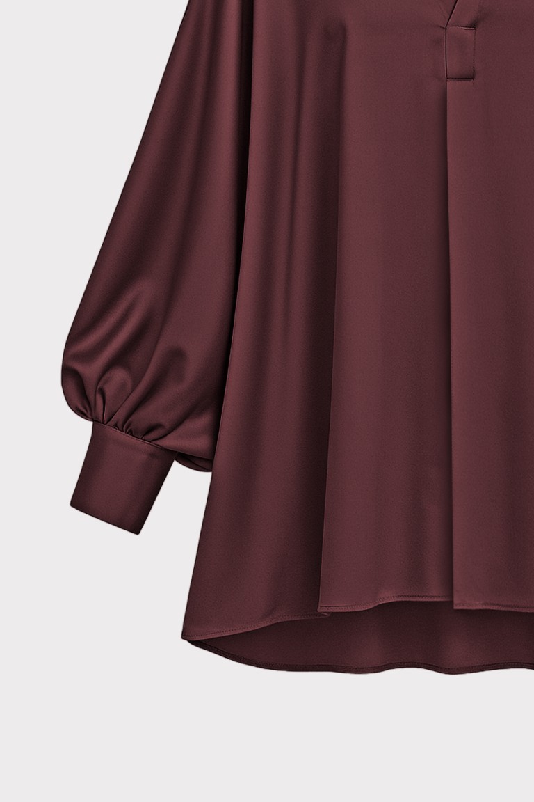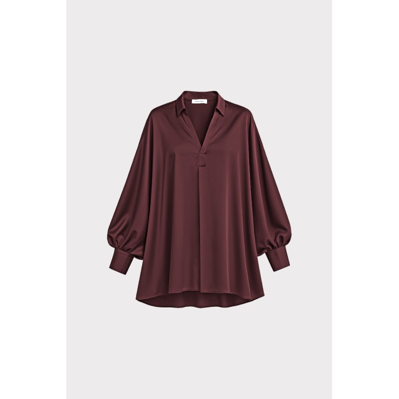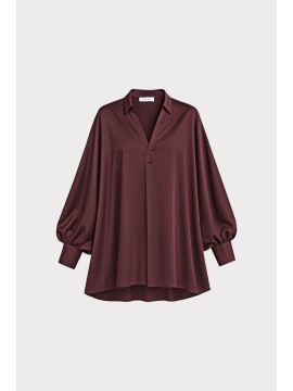 Elegante e senza tempo, questa blusa over in satin è lemblema della femminilità sofisticata. Il taglio morbido e fluido accarezza la silhouette con leggerezza, mentre il colletto alla coreana e lo scollo a V donano un tocco di modernità e raffinatezza. Il polsino ampio con bottone aggiunge un tocco sartoriale, mentre il fit over regala una silhouette fluida e confortevole, adatta a tutte le fisicità. Un capo versatile, chic e contemporaneo da abbinare a pantaloni tailoring, gonne midi o denim a vita alta.