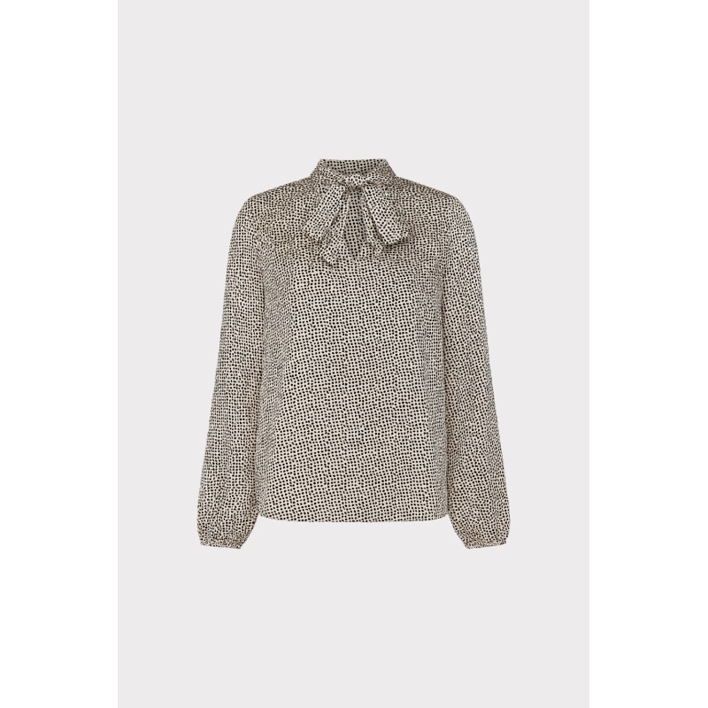Blusa in tessuto satinato con stampa a pois, modello ampio e morbido con manica lunga.. Leggera, fluida e sofisticata, regala movimento ad ogni passo e unallure bon ton che non passa mai di moda. Perfetta da abbinare a pantaloni sartoriali per un look da ufficio chic, o a una gonna leggera per un outfit primaverile dal fascino rétro. La scelta giusta per chi ama la femminilità giocosa e raffinata