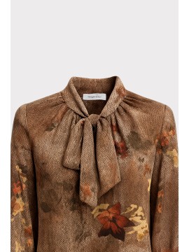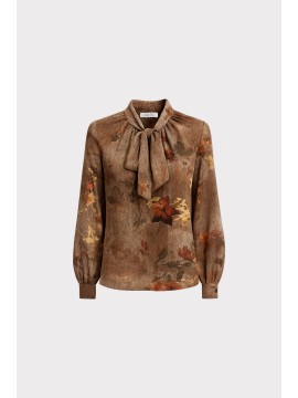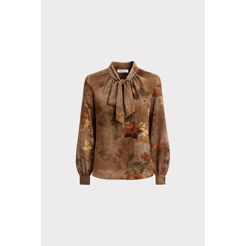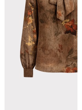Questa blusa in chiffon leggero combina eleganza e modernità in ununica silhouette fluida e femminile. La stampa floreale ad effetto acquerello si intreccia con una base tessile a micro disegno spigato, creando una texture sofisticata e dinamica che valorizza ogni dettaglio del capo.Lo scollo a V con laccetto da annodare permette di modulare lo stile a seconda delloccasione: lasciato morbido per un look rilassato, oppure chiuso a fiocco per un effetto più romantico e raffinato. La linea morbida e scivolata si adatta naturalmente al corpo, mentre le maniche leggere e lorlo fluido rendono la blusa perfetta da indossare con gonne o pantaloni, per outfit sia casual che eleganti