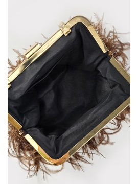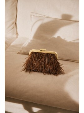 Pochette rivestita da morbide piume. Chiusura metallica e catena per tracolla che la rende pratica e versatile. Interno foderato con tasca porta oggetti. Perfetta per tutti gli eventi, aggiunge un tocco di raffinatezza al look