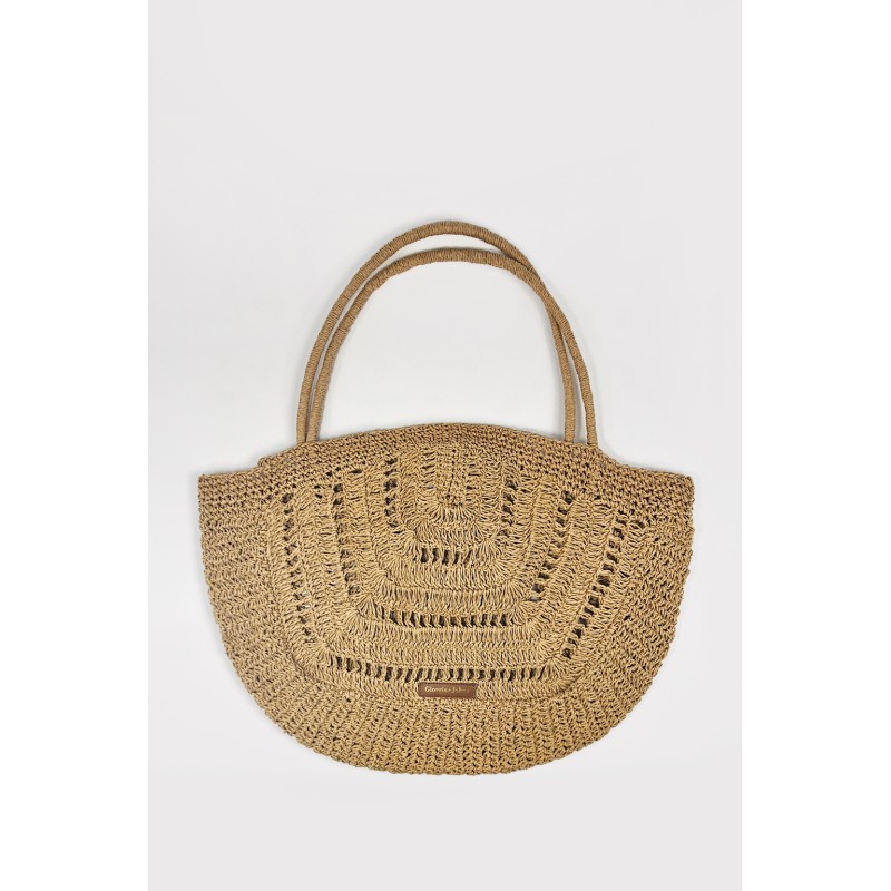 Borsa in rafia naturale. Interno sfoderato. Manici tubolari a spalla. Dimensioni: altezza cm 44, lunghezza superiore cm 54, lunghezza inferiore cm 44, profondità cm 1.