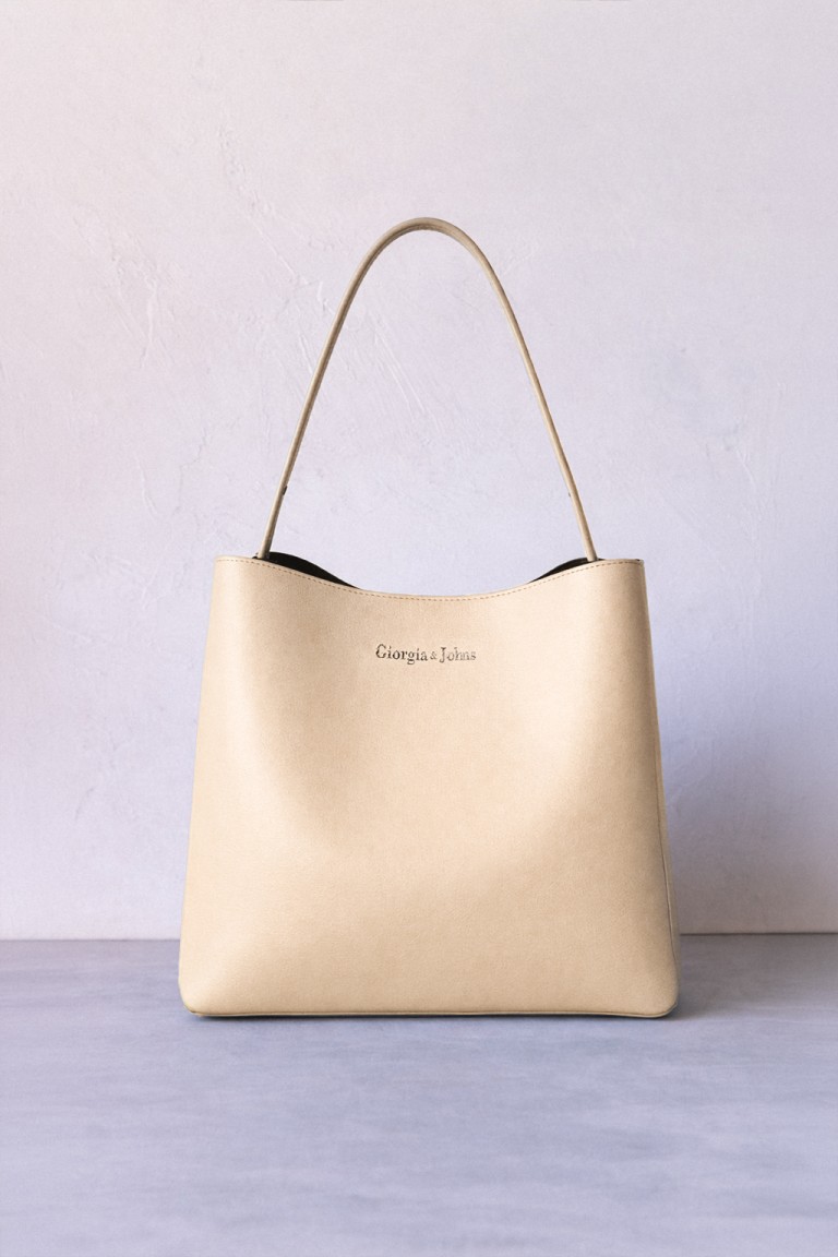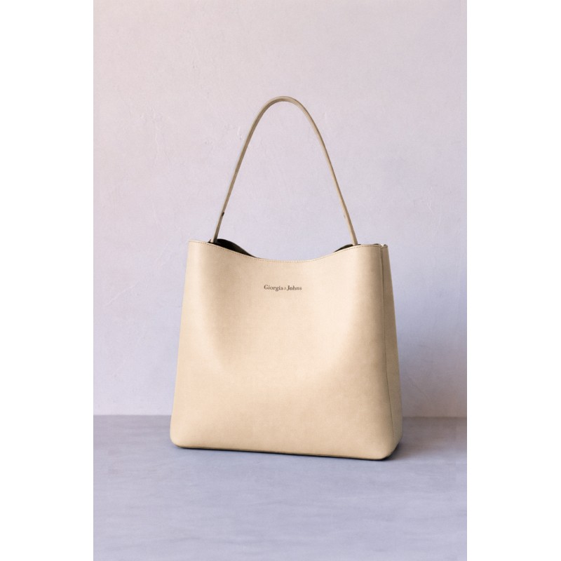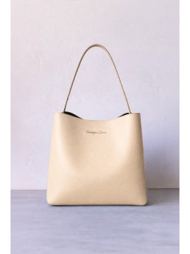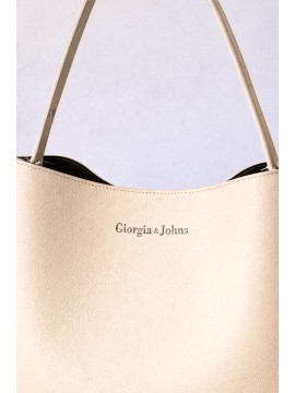 Borsa a spalla regolabile in similpelle a grana piccola. Dettaglio di occhielli vela e fibbie metalliche sui lati. Chiusra centrale con bottone nascosto. Tasche portaoggetti interne.Altezza x Larghezza x Spessore 28 x 30 x 14cm.