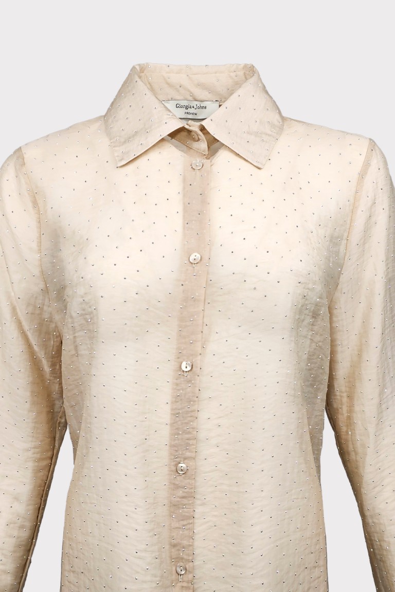 Camicia regular fit realizzata in tessuto strass scintillante. Colletto classico, abbottonatura frontale e maniche lunghe con polsini