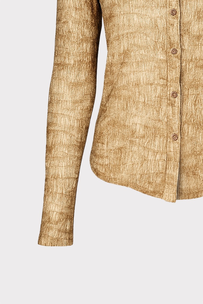Questa camicia unisce originalità e praticità grazie al suo particolare effetto grafico su tessuto leggero. Con il colletto classico e bottoni a vista, diventa il capo ideale per chi vuole distinguersi senza rinunciare al comfort. Perfetta con jeans o pantaloni sartoriali, si adatta dal lavoro al tempo libero con un tocco creativo.