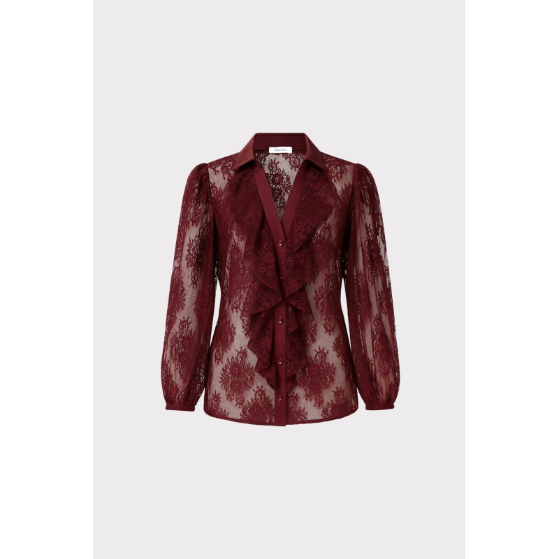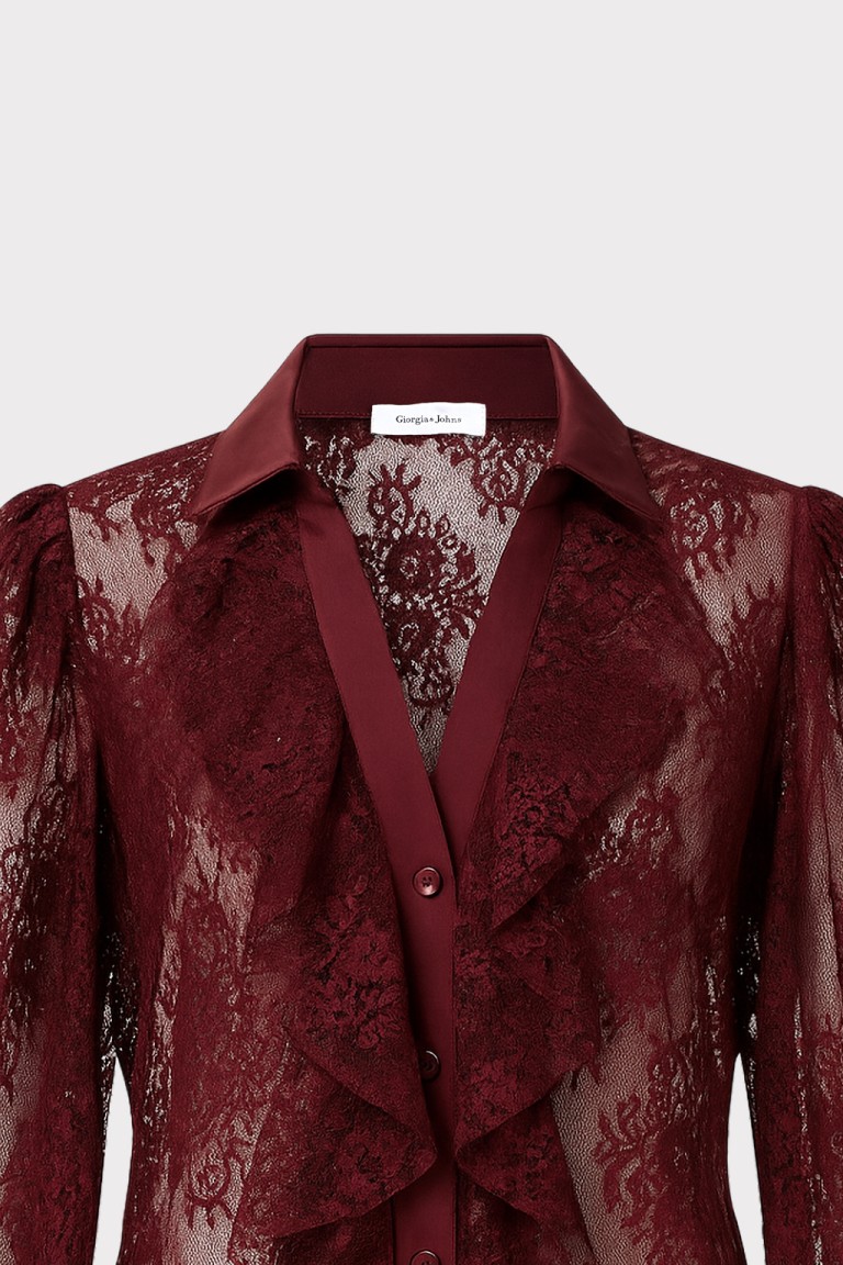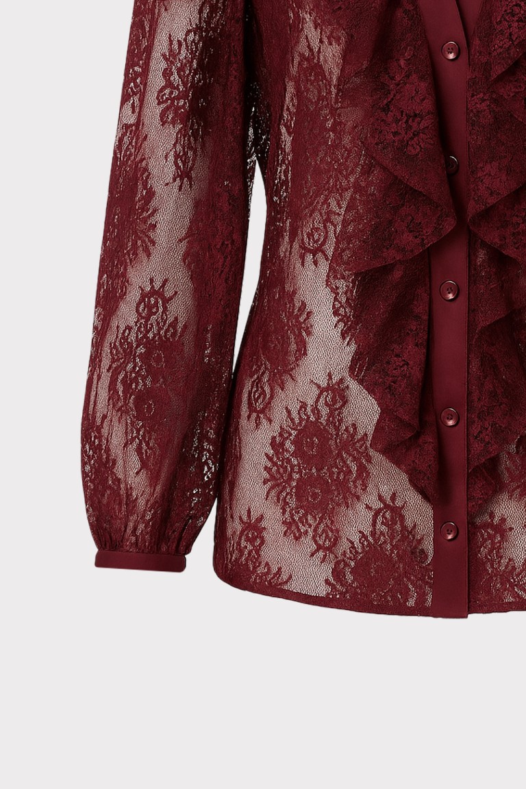 Camicia in pizzo a motivo floreale con linea leggera e femminile. Le rouches frontali sul cannoncino lungo labbottonatura valorizzano il décolleté e aggiungono movimento, mentre il colletto in contrasto dona un tocco contemporaneo. Le maniche lunghe leggermente balloon con polsino elasticizzato completano un capo versatile, adatto dal giorno alla sera. Perfetta con pantaloni sartoriali, gonne midi o denim per un look chic e immediato.