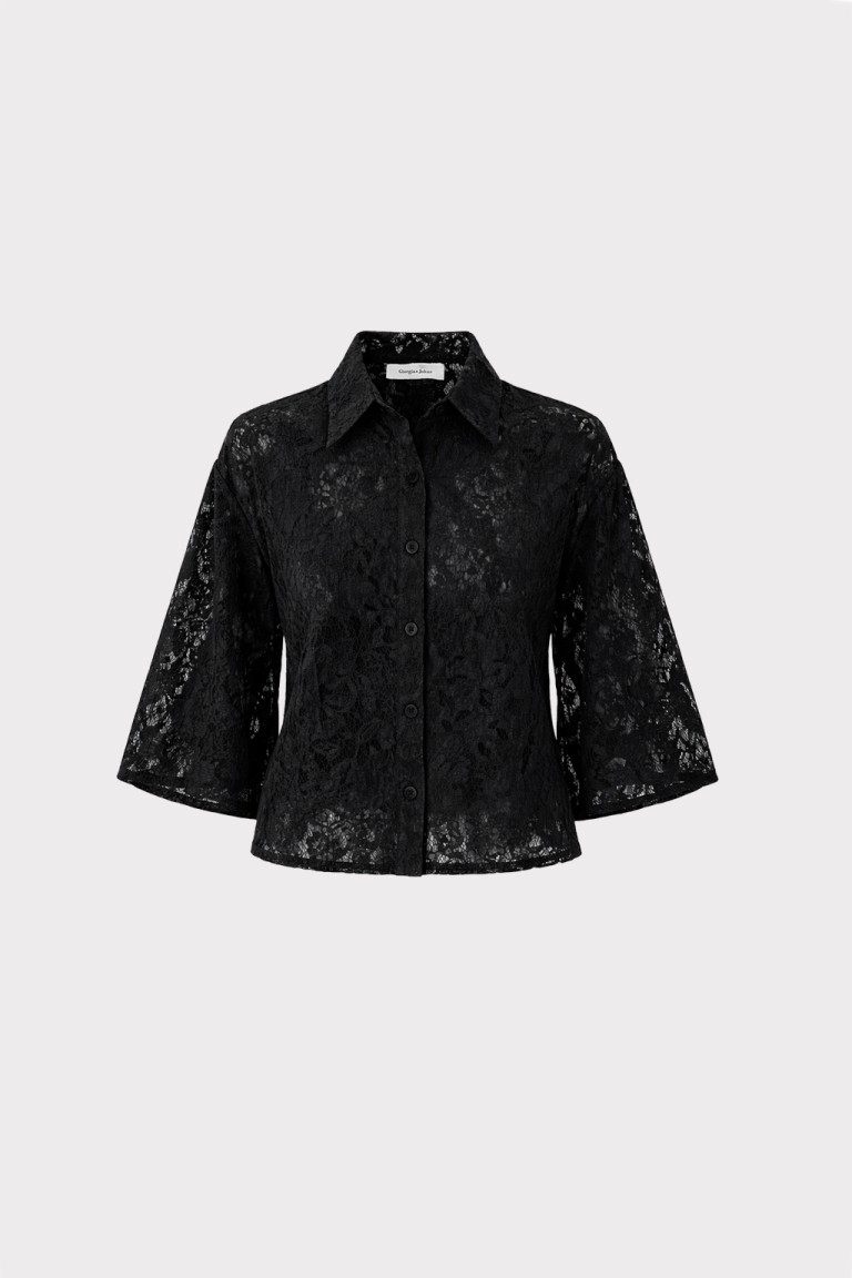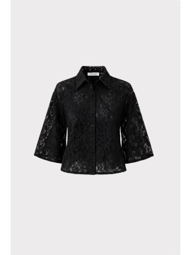 Camicia in pizzo dal fascino sofisticato, caratterizzata da una struttura a scatoletta che dona un fit moderno e leggermente squadrato. Il colletto classico e la chiusura con bottoni rivestiti esaltano la linea pulita del capo, mentre la trasparenza del pizzo gioca con la luce per un effetto elegante e sensuale. Perfetta da indossare su top lingerie o abbinata a pantaloni a vita alta per un look contemporaneo e raffinato.