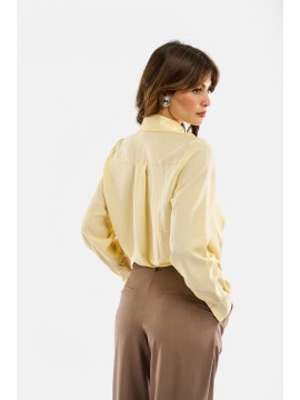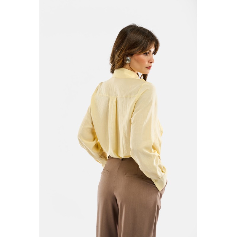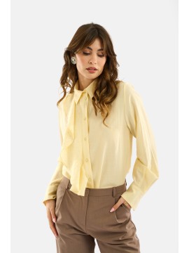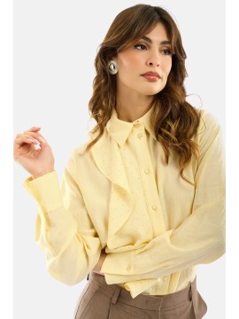 Camicia in tessuto leggero dalla mano morbida, pensata per chi cerca un’eleganza raffinata e luminosa. Il modello presenta un volant asimmetrico arricchito da micro strass, dettaglio che illumina delicatamente il fronte e rende il capo perfetto per occasioni speciali e look da giorno ricercati. Il colletto classico e la linea fluida garantiscono una vestibilità confortevole e femminile. Facile da abbinare a pantaloni eleganti o gonne morbide per un outfit sofisticato