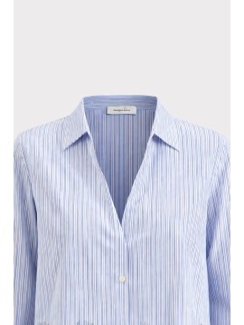 Questa camicia a righe con pizzo modello scatoletta è un capo dal design contemporaneo che unisce struttura sartoriale e dettagli romantici. La linea boxy, corta e leggermente ampia, crea un effetto moderno e disinvolto, perfetto per una donna che ama volumi puliti e proporzioni attuali. Le righe verticali slanciano visivamente la figura, mentre il fondo impreziosito da pizzo ricamato aggiunge un contrasto delicato e femminile. Il colletto classico e l’abbottonatura frontale mantengono l’equilibrio tra eleganza e versatilità. Un capo iconico e trasversale, pensato per interpretare uno stile femminile evoluto: essenziale nella forma, ricercato nei dettagli.