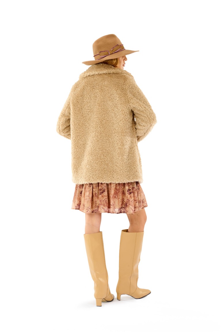 Giacca effetto teddy con design oversize che dona carattere a questo capo caldo e trendy, perfetto per le giornate più fredde. Vestibilità comoda e versatile, ideale per completare outfit urban e casual con un tocco glamour.