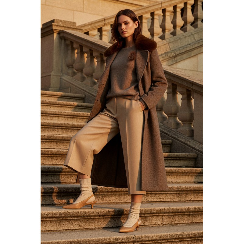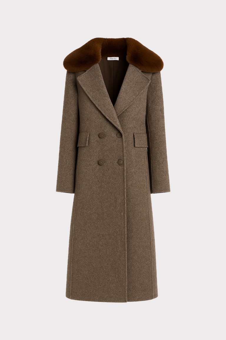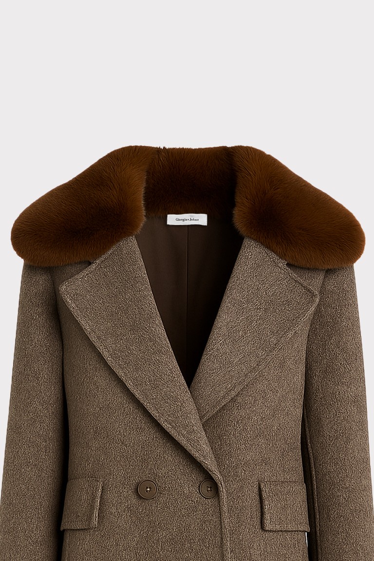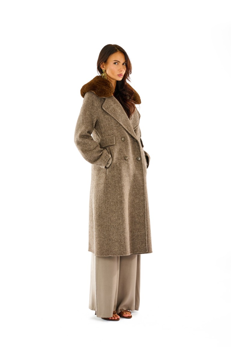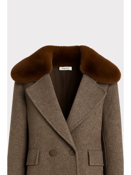 Cappotto doppiopetto in misto lana con collo in eco pelliccia, perfetto per affrontare linverno con stile ed eleganza. Il design strutturato con rever ampi e tasche a pattina aggiunge un tocco sofisticato, mentre il collo in pelliccia sintetica dona calore e charme. Ideale per look formali e raffinati, è un must-have per una stagione fredda chic e ricercata.