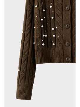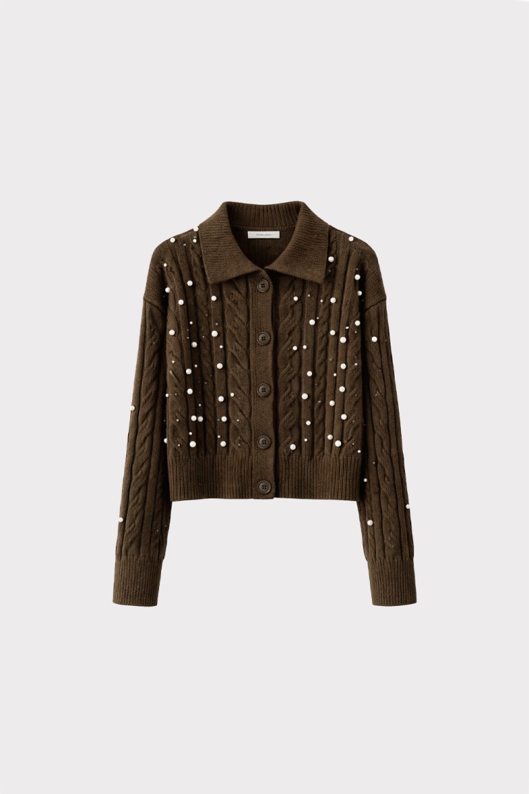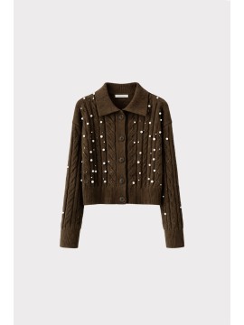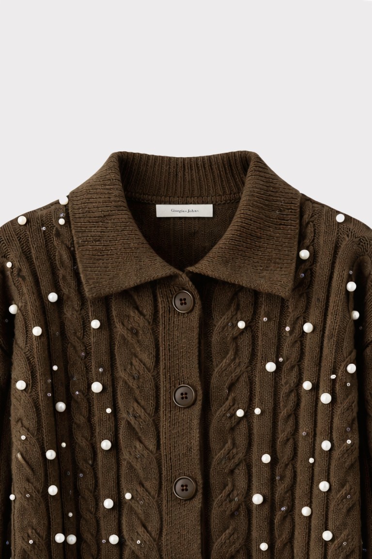Questo cardigan interpreta la maglieria classica con un tocco femminile e decorativo. Il colletto strutturato, la lavorazione a trecce e le applicazioni perlate donano eleganza e carattere al capo. Perfetto indossato chiuso come maglia o aperto su top e camicie, è un cardigan ideale per look da giorno curati e contesti più formali. Un cardigan gioiello, pensato per valorizzare anche loutfit più semplice.