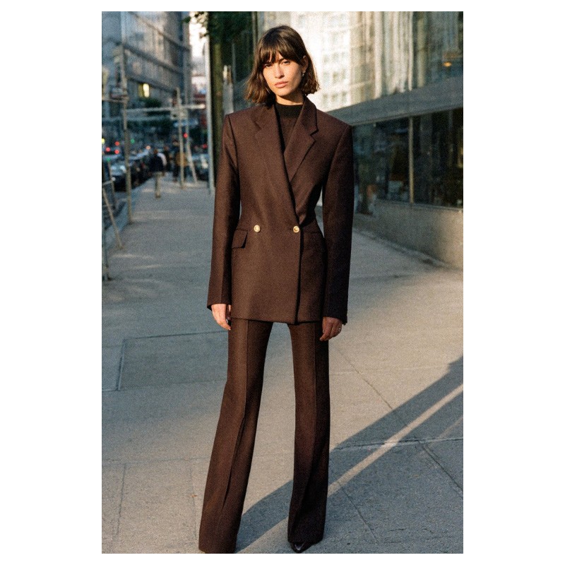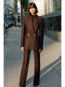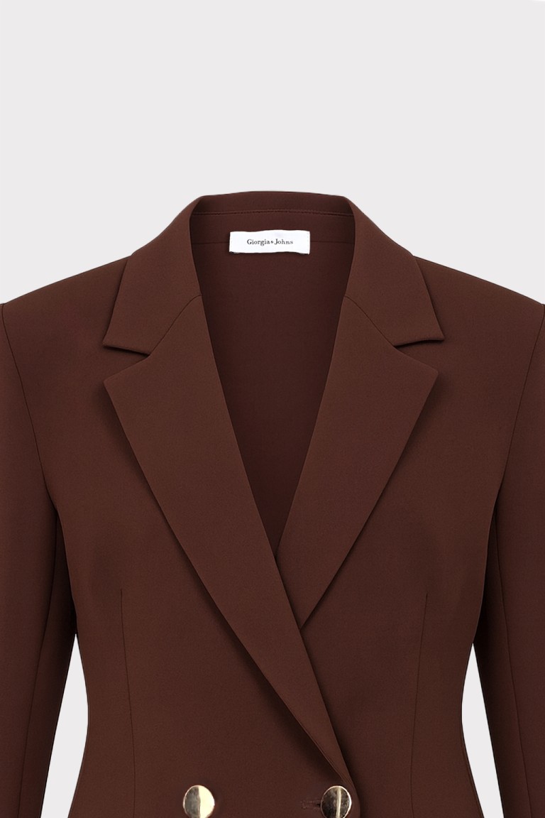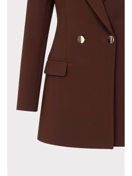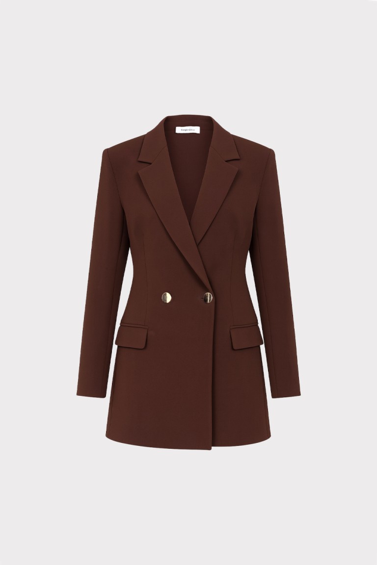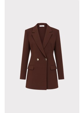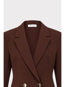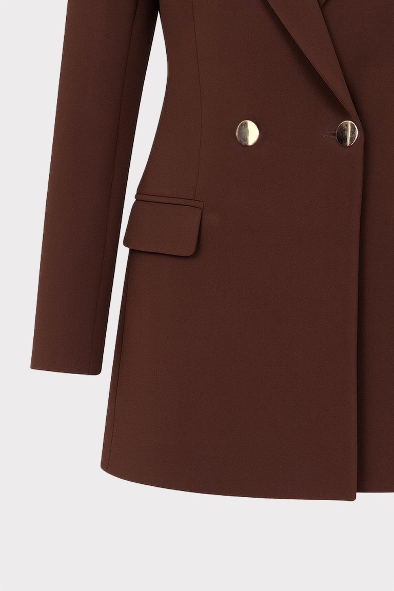 Giacca doppiopetto in tessuto sartoriale, dal taglio moderno e sofisticato. Le linee pulite e la costruzione elegante valorizzano la silhouette, mentre i bottoni metallici donano luce e ricercatezza. Un capo che unisce rigore e femminilità, ideale per distinguersi con stile in ufficio, durante eventi formali o in occasioni speciali.