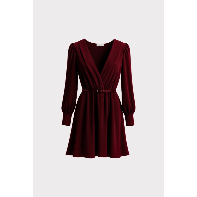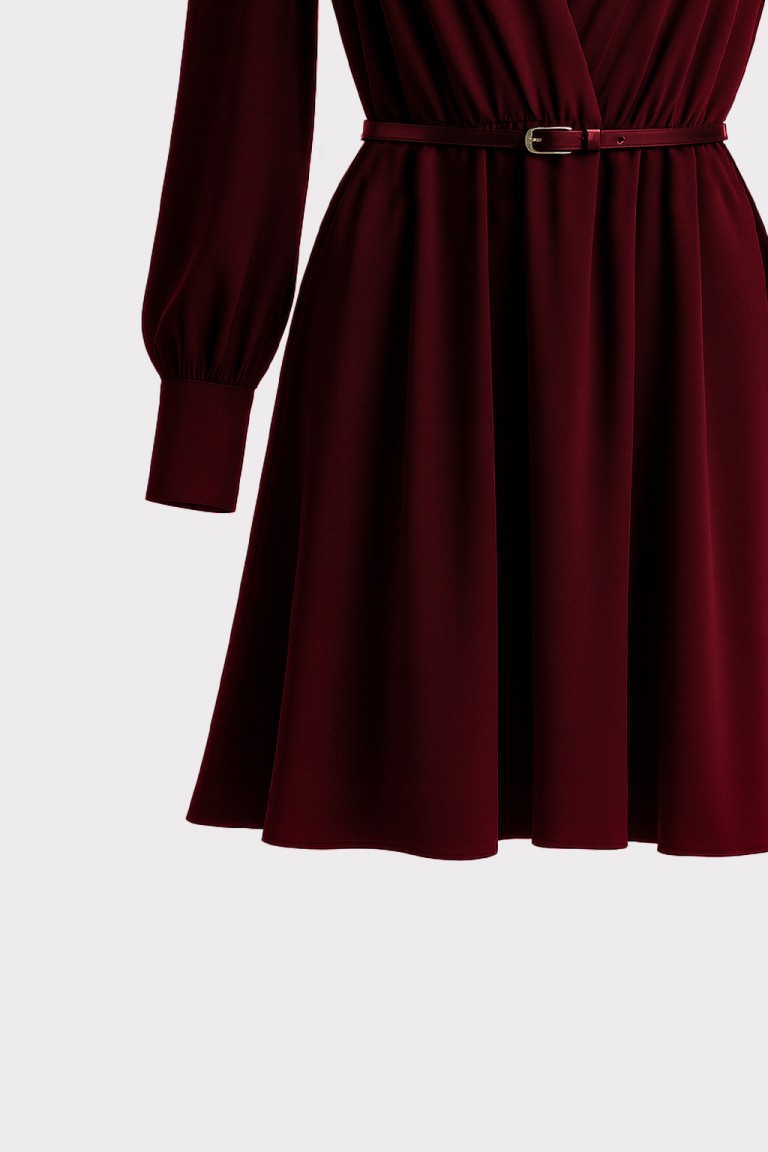 Questo abito corto in tessuto fluido unisce eleganza e comfort in una linea che accompagna delicatamente la figura. La scollatura a V incrociata esalta il décolleté con naturalezza, mentre il taglio in vita con cinturino definisce il punto vita con discrezione, creando una silhouette equilibrata e armoniosa. Le maniche lunghe con polsino alto aggiungono un tocco sofisticato. Il tessuto, leggero e morbido al tatto, scivola con grazia conferendo movimento e luminosità al look. Vestibilità regolare e leggermente svasata.