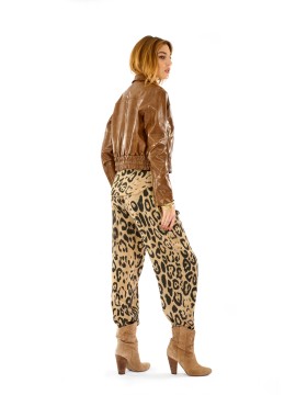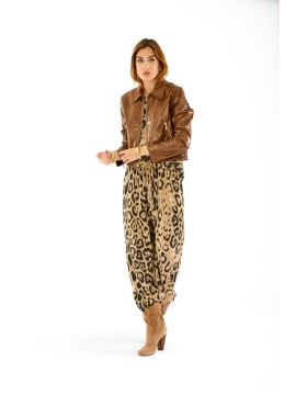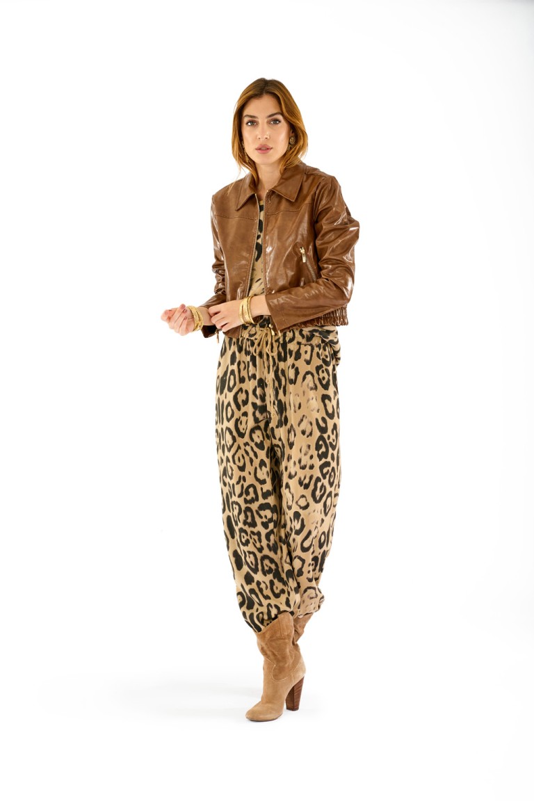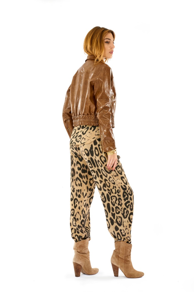 Giacca corta in ecopelle con zip dorata e tasche frontali. Dettaglio arricciato sul fondo per un fit contemporaneo. Ideale per look urban chic o da abbinare a pantaloni eleganti per un contrasto di materiali.