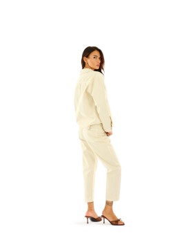 Giacca in denim con vestibilità morbida. Caratterizzata da tasche applicate sul petto arricchite da strass e perle decorative. Colletto classico, chiusura frontale con bottoni metallici e polsini con bottone. Perfetta da abbinare al jeans coordinato per un total look luminoso e contemporaneo.
