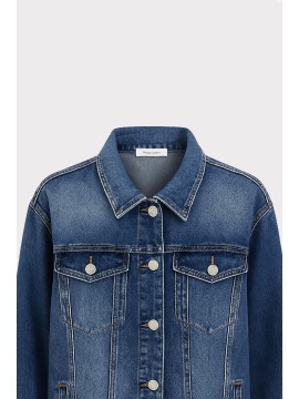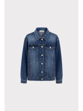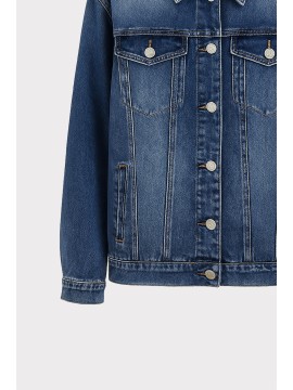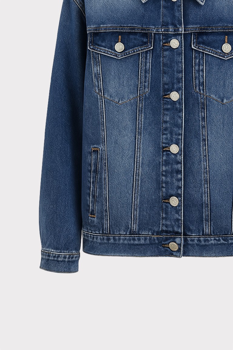 Giacca di jeans realizzata in denim resistente e dal lavaggio blu medio, offre uno stile intramontabile e una vestibilità comoda che si adatta a ogni look. Il design presenta i classici dettagli della denim jacket: chiusura con bottoni metallici, taschini frontali con pattina e cuciture a contrasto che valorizzano la struttura del capo.Il taglio leggermente over dona un tocco contemporaneo e permette di indossarla sopra maglie, camicie o felpe leggere, rendendola perfetta nelle mezze stagioni.