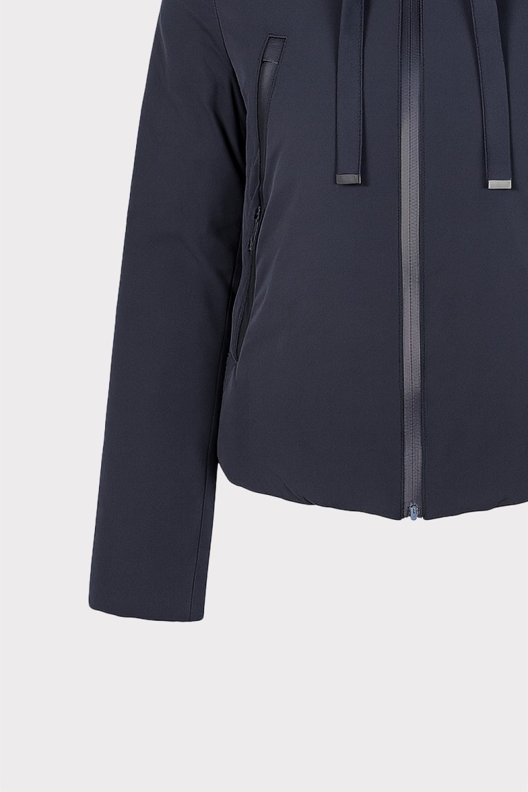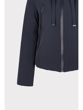 Piumino corto da donna con cappuccio oversize e zip frontale, ideale per affrontare linverno con stile e comfort. Realizzato in tessuto tecnico antivento, presenta tasche con zip obliqua e coulisse regolabile per una vestibilità personalizzata. Perfetto per un look casual e metropolitano, è un must-have per la stagione fredda.