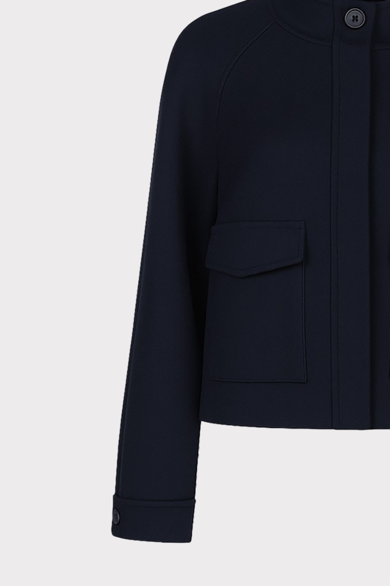 Giacca corta in misto lana, con collo alto e maxi tasche con patta. Un capo essenziale ma di carattere, perfetto per completare look casual chic. La chiusura con bottoni a vista dona un tocco raffinato e contemporaneo. Ideale per lautunno inverno
