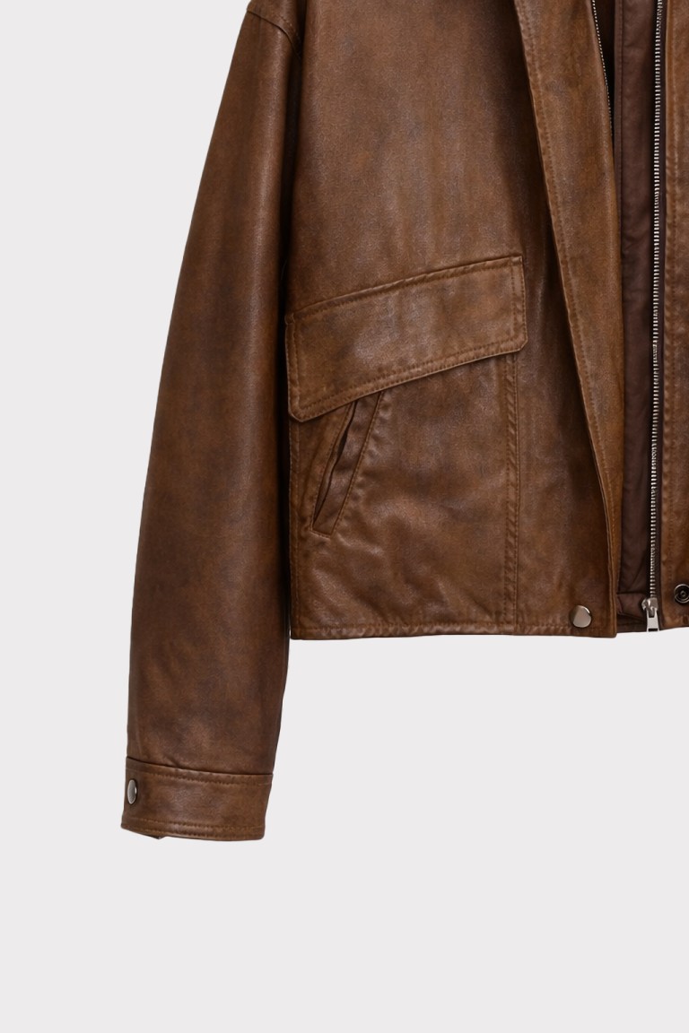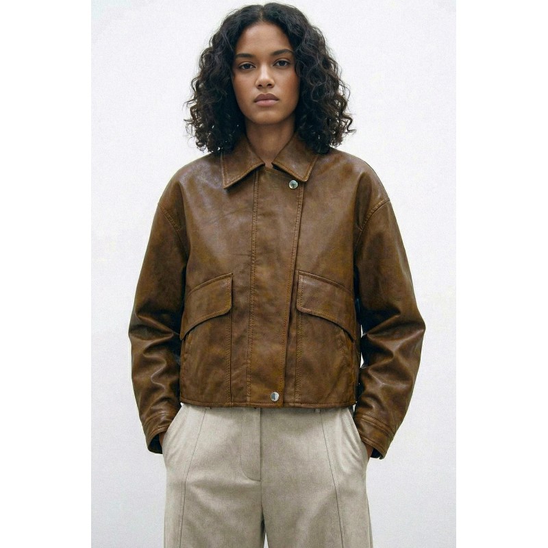 La giacca in ecopelle effetto vintage è un capo essenziale dal carattere deciso, pensato per interpretare uno stile contemporaneo e versatile. La linea cropped valorizza la silhouette e dona equilibrio ai volumi, rendendola perfetta sia per look casual che per outfit più strutturati. Realizzata in ecopelle morbida unisce estetica e funzionalità: la texture richiama la pelle naturale mentre la costruzione garantisce comfort e libertà di movimento. Must-have del guardaroba contemporaneo. La lunghezza corta enfatizza il punto vita e slancia la figura, rendendo il capo ideale per costruire outfit equilibrati e dinamici.