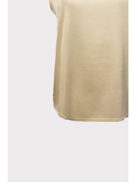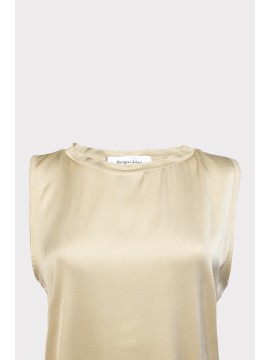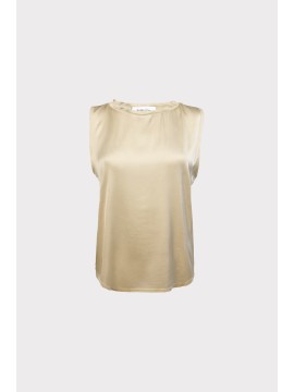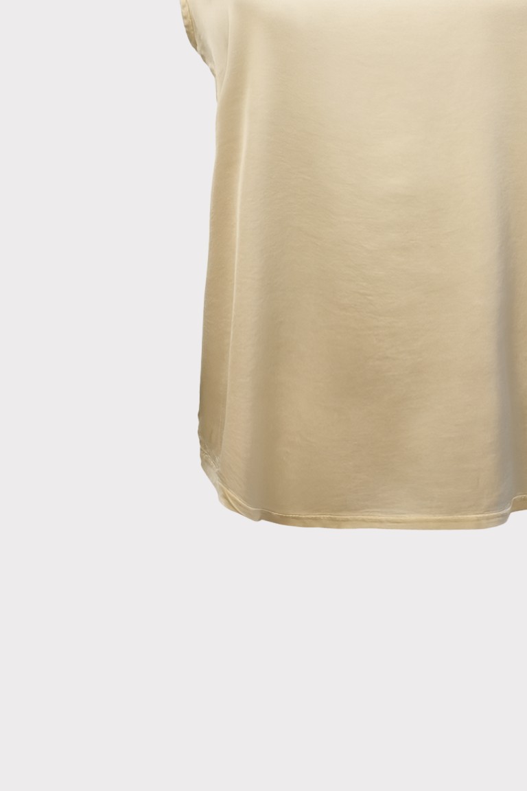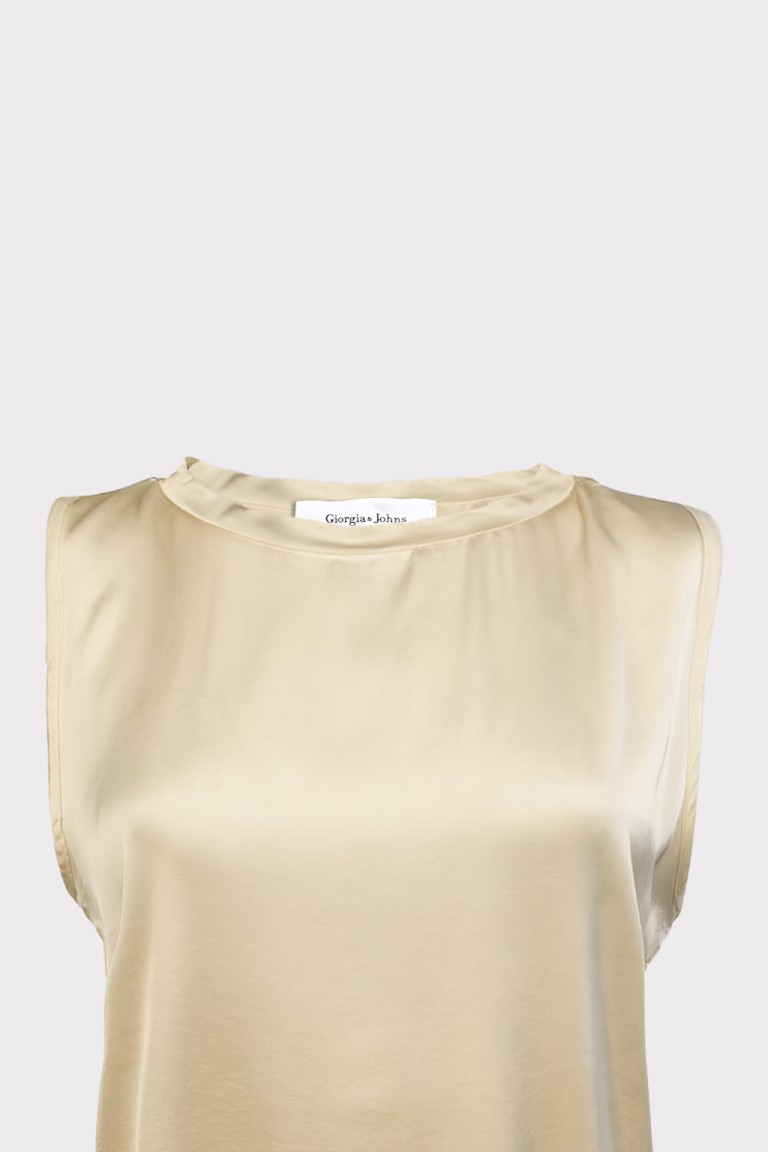 Top da donna in raso di viscosa con dettaglio di passamaneria sullo scollo e taglio leggermente svasato. Modello basic smanicato, è ideale sotto blazer o da solo per uno stile sobrio ma chic.