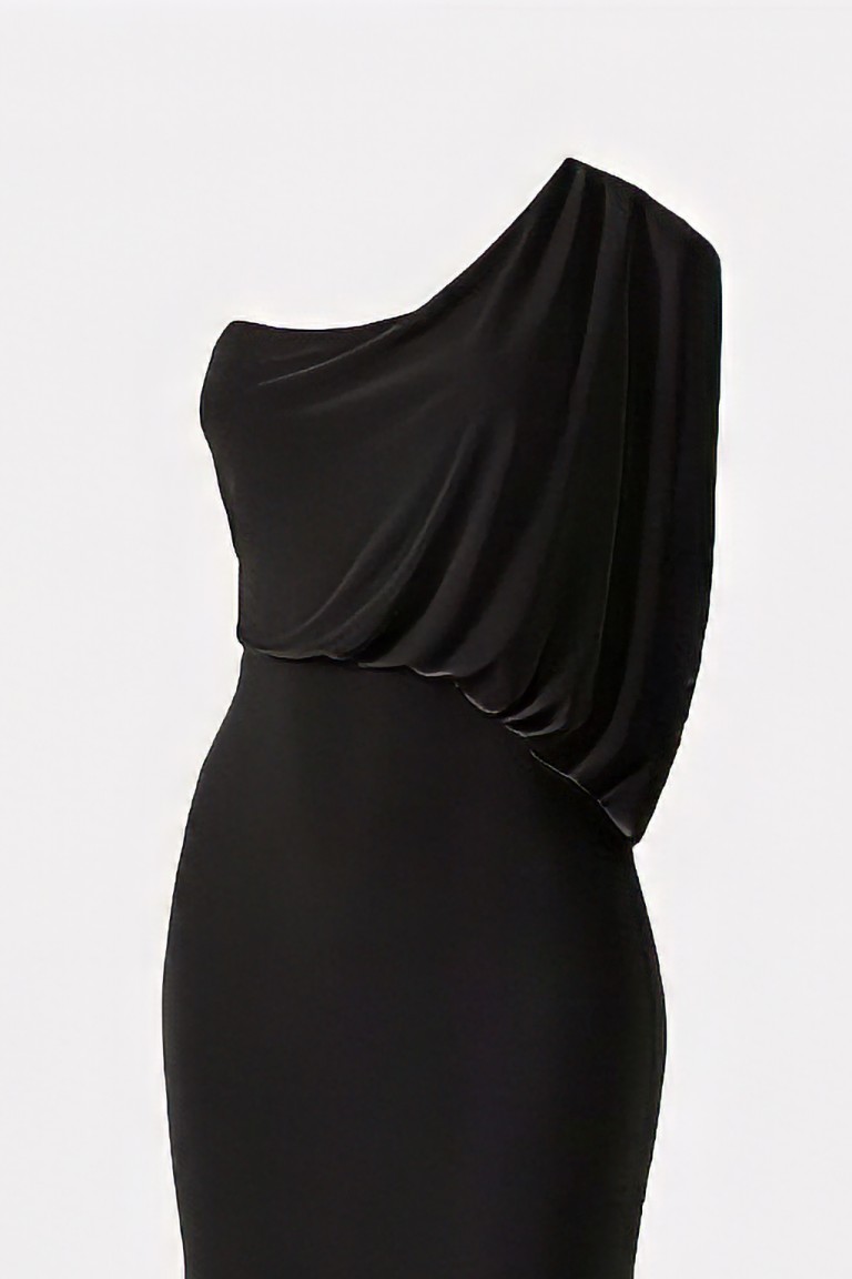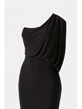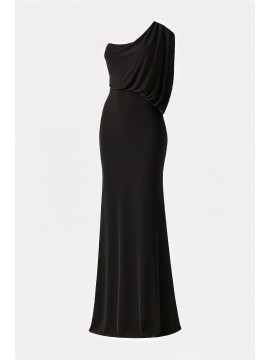 Abito lungo monospalla in jersey fluido, caratterizzato da uno scollo obliquo elegante e da una singola bretella sottile che crea un contrasto raffinato con il drappeggio morbido sul busto. La linea scivolata valorizza la silhouette con un effetto slim ma confortevole, perfetto per cerimonie, eventi serali e occasioni speciali. Un modello essenziale e moderno, pensato per chi cerca un’eleganza senza tempo con un twist contemporaneo