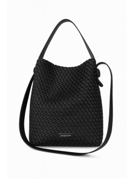 Borsa in similpelle intrecciata. Design morbido e capiente. E' dotata di un doppio manico di cui uno lungo regolabile per essere portata a mano o a spalla. Chiusura centrale con bottone nascosto Perfetta per l’uso quotidiano ma anche serale grazie alla sua praticità e al suo stile raffinato. cm 27x34x14