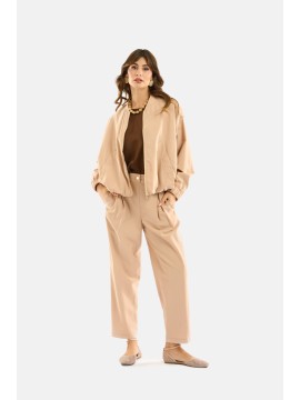 Pantalone dal taglio morbido e linea pulita, realizzato in cotone per una vestibilità confortevole e contemporanea. Le pinces frontali donano volume e struttura, mentre il bottone metallico aggiunge un dettaglio raffinato. Perfetto per look casual chic o da ufficio.