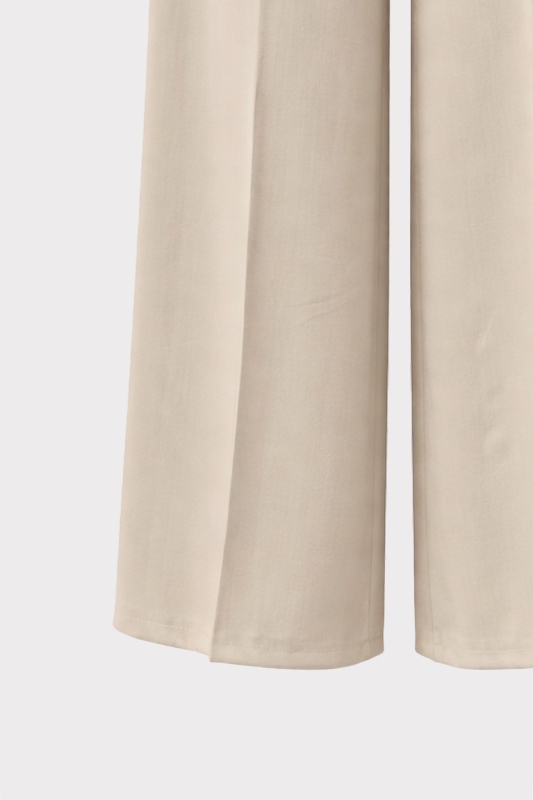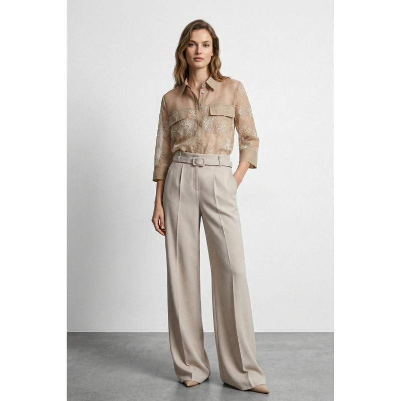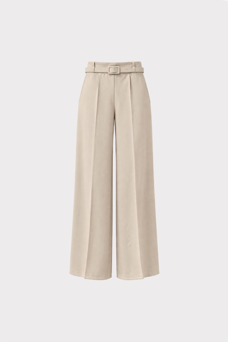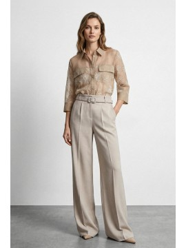 Pantalone dal design elegante e contemporaneo, caratterizzato da una linea dritta e fluida che valorizza la silhouette con uno stile pulito e raffinato. Un capo versatile, perfetto per creare outfit curati e moderni. Il modello presenta vita definita con cintura coordinata, dettaglio che valorizza il punto vita e dona un tocco sofisticato al look. La chiusura con zip laterale mantiene la linea frontale essenziale e minimal, mentre il bustino con elastico sul retro garantisce comfort e migliore adattabilità alla figura.