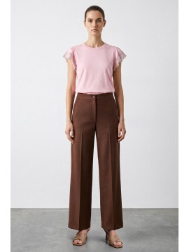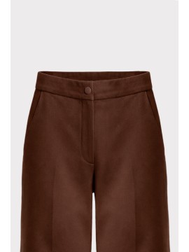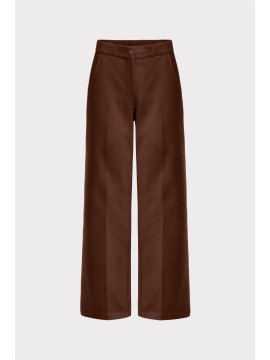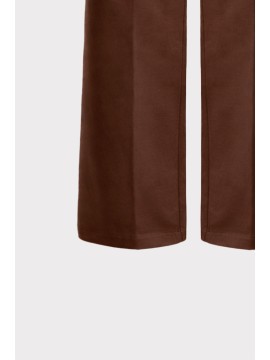 Pantalone dal design elegante e contemporaneo, caratterizzato da una costruzione sartoriale che unisce struttura e comfort in modo equilibrato. Il modello presenta una vita definita con chiusura frontale e pinces che valorizzano la silhouette, accompagnando il capo in una linea ampia e fluida. Il taglio lungo e la costruzione pulita contribuiscono a creare un effetto slanciato e raffinato, ideale per look moderni e sofisticati. La vestibilità è studiata per garantire comfort e libertà di movimento, mantenendo al tempo stesso un’estetica ordinata e curata nei dettagli.