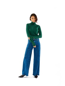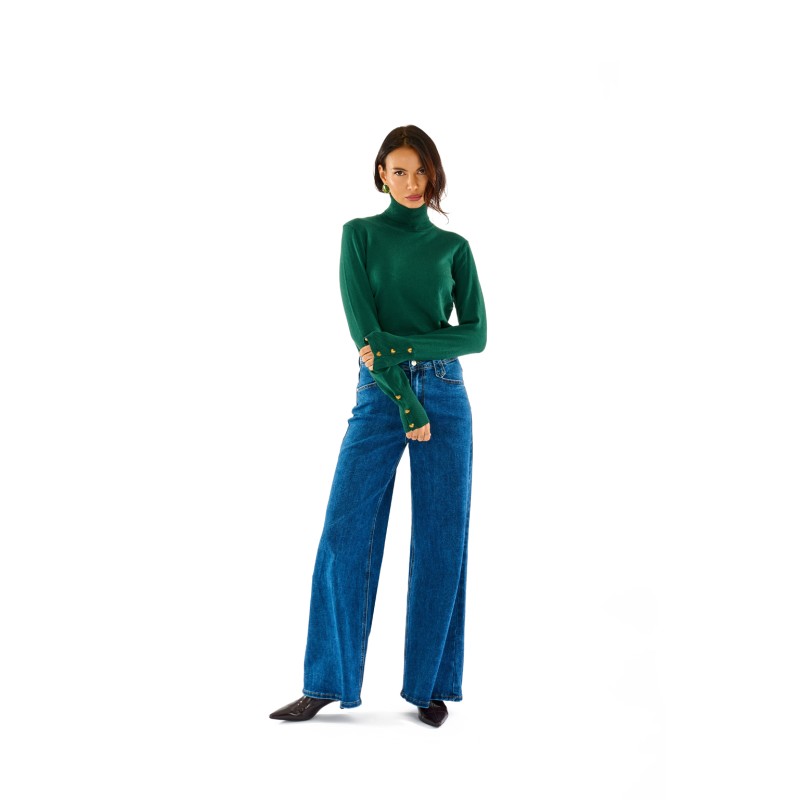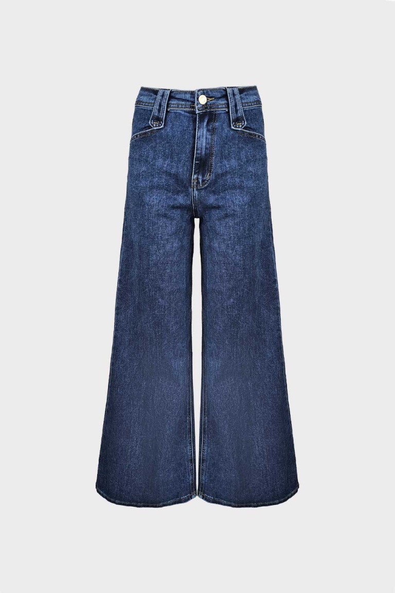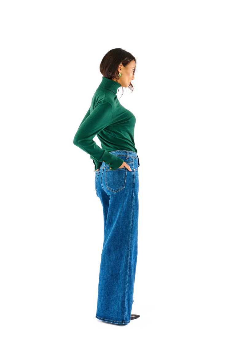 Jeans donna modello a gamba extra larga, realizzati in denim effetto slavato. Vita alta, chiusura con zip e bottone, tasche anteriori e posteriori. Il fit moderno e fluido slancia la silhouette, perfetto per look streetwear e casual chic