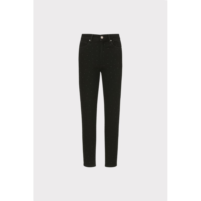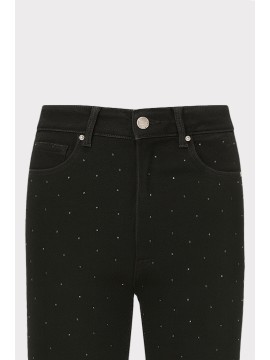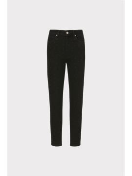 Jeans che scolpisce le forme con una silhouette aderente e sensuale. Il fondo scuro è illuminato da un fitto cielo di micro strass, regalando un tocco di luce sofisticata e moderna. Perfetti per chi cerca versatilità e glamour in un unico pezzo, questi jeans si adattano sia a un look da giorno con sneakers che a una serata speciale con tacchi e top elegante. Confortevoli, elasticizzati e sempre alla moda: i tuoi alleati per brillare senza eccessi.
