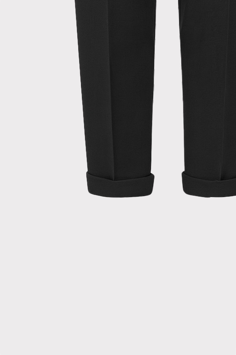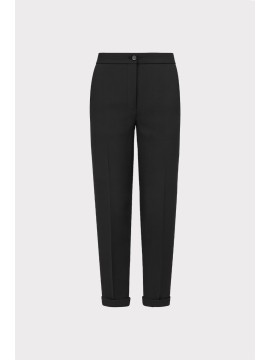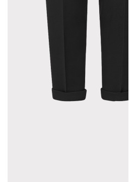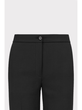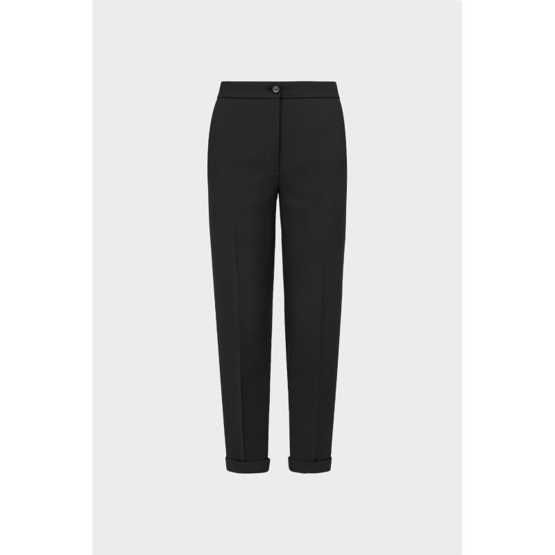 Pantalone a sigaretta, realizzato in tessuto nido dape che conferisce struttura e raffinatezza. La trama tridimensionale valorizza il design, creando un effetto elegante e moderno al tempo stesso. La linea asciutta, leggermente alla caviglia, slancia la figura e rende il capo versatile: perfetto da indossare in ufficio con blazer coordinato, oppure da solo per un look più contemporaneo e dinamico