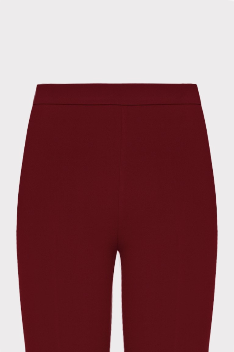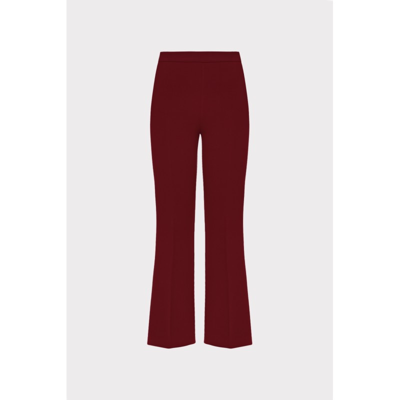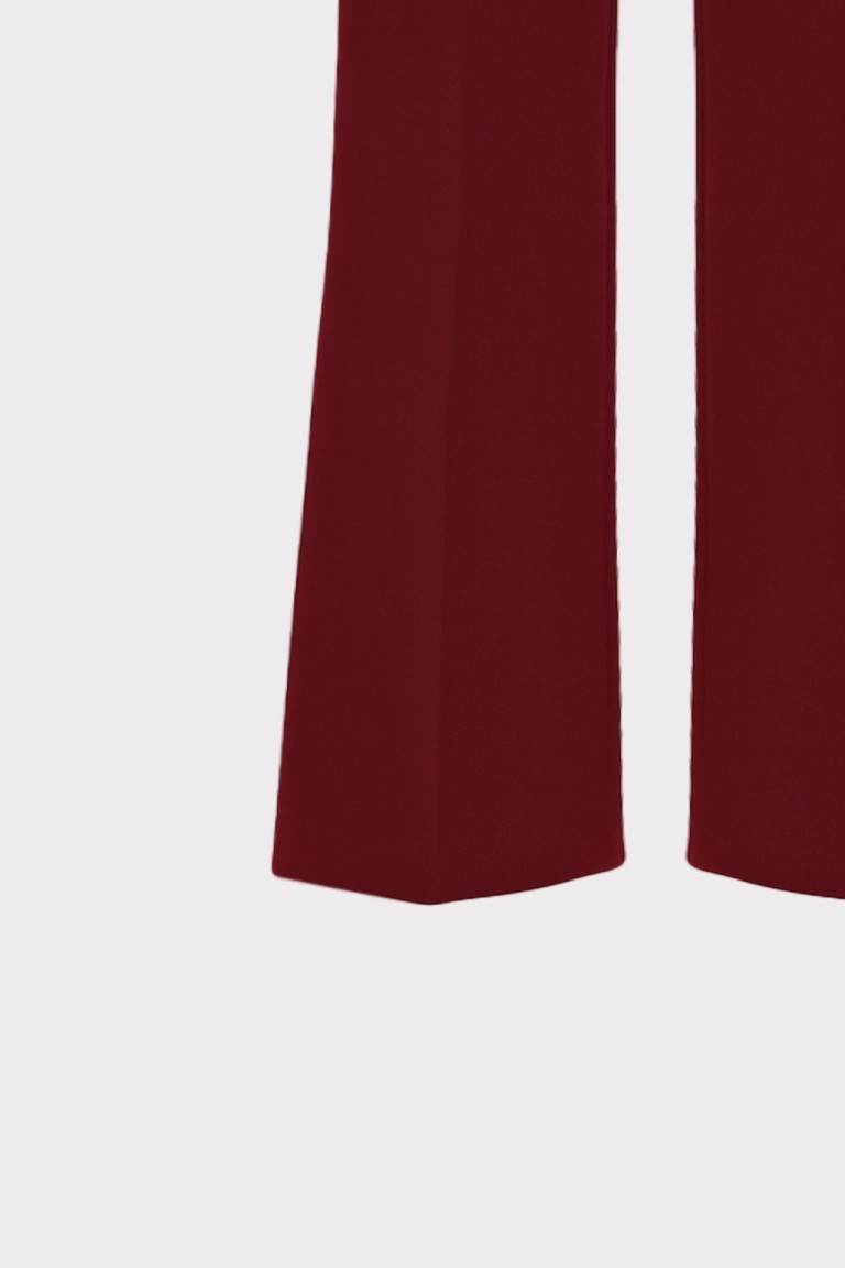 Pantalone con linea asciutta sulla coscia che si apre in una delicata zampa al fondo. Un dettaglio che slancia la figura e dona movimento al passo, rendendo il modello elegante ma con un twist contemporaneo. Ideale da indossare con tacchi per un effetto ancora più slanciato, oppure con scarpe basse per un look moderno e disinvolto. Un capo versatile e raffinato, perfetto da coordinare con la giacca oppure da interpretare in chiave più daily.