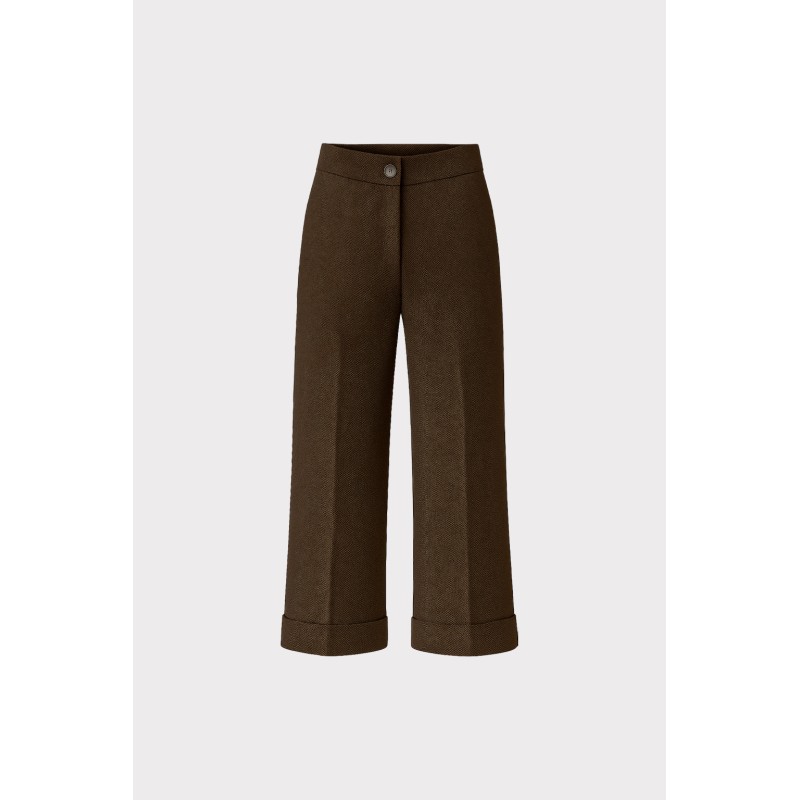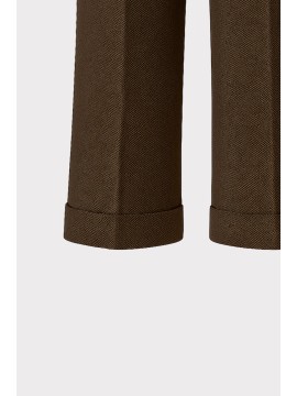 Questo pantalone con piegone frontale è realizzato in tessuto puntinato stretch che unisce eleganza e comfort. Il suo design pulito, arricchito dal dettaglio del risvolto al fondo, dona una linea dritta e slanciata, perfetta per valorizzare ogni silhouette. Un capo essenziale e contemporaneo, ideale per lufficio o per look casual chic. Linea ampia e dritta, chiusura frontale con bottone e zip nascosta.Perfetto per il giorno e la sera: abbinato a una camicia o a un blazer strutturato per un look da lavoro elegante, oppure con un dolcevita morbido e sneakers per uneleganza rilassata ma sempre curata.