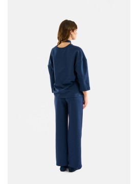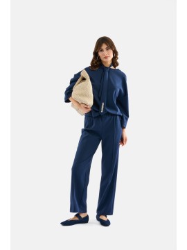 Il pantalone è realizzato in modal morbido ed elastico, ideale per chi cerca comfort e stile in un’unica soluzione. Il suo design è pulito e contemporaneo, caratterizzato da una gamba palazzo che slancia la figura e dona fluidità ai movimenti. La presenza delle nervature frontali aggiunge struttura al capo, valorizzandone la silhouette e garantendo un effetto più elegante e curato. La cintura in vita è elasticata, pensata per assicurare una vestibilità comoda e sempre perfetta.