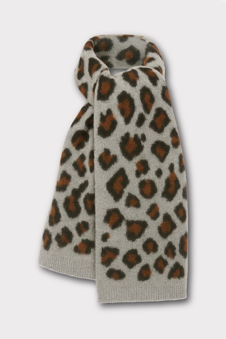 Sciarpa morbida con fantasia animalier leopardata. Realizzata in una calda miscela di lana e poliestere, è laccessorio ideale per aggiungere un tocco di stile audace ai tuoi look invernali. cm 22X160