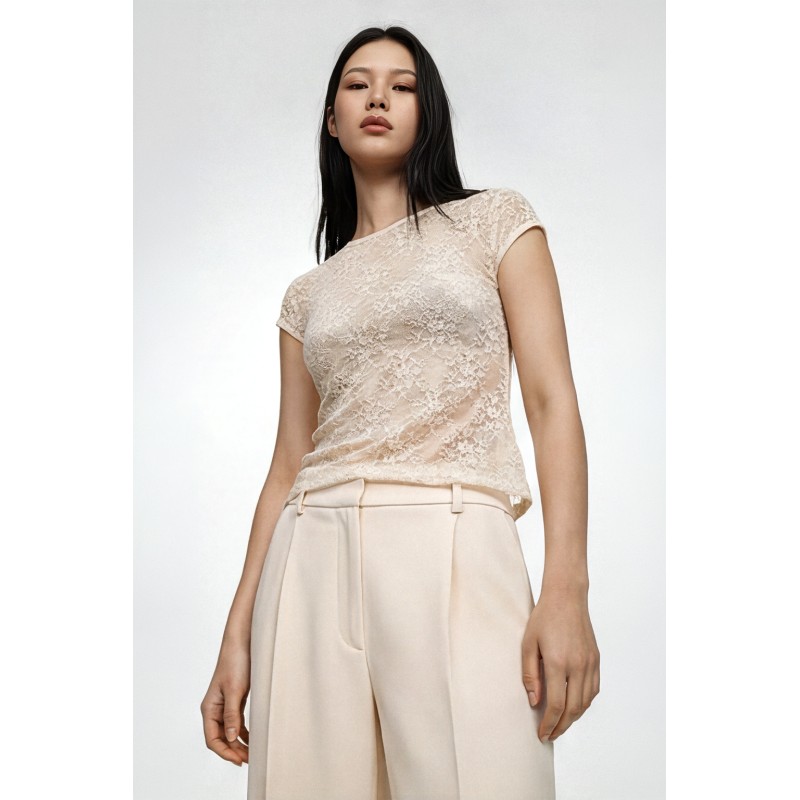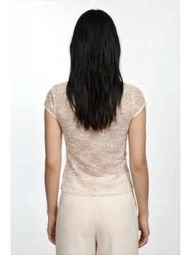Top realizzato in microrete ricamata, caratterizzata da un delicato motivo floreale in rilievo che dona al capo una texture raffinata e leggera. Un design essenziale che mette al centro la materia, pensato per valorizzare il look con discrezione e femminilità.Il girocollo pulito e il taglio senza maniche rendono questo top estremamente versatile, ideale sia come capo principale sia come elemento di layering sotto giacche, blazer o capi sartoriali. La microrete, morbida e traspirante, crea un elegante gioco di trasparenze bilanciate, perfetto per un’eleganza quotidiana contemporanea.