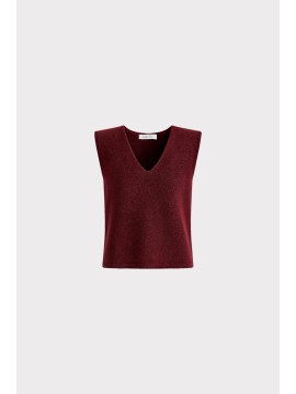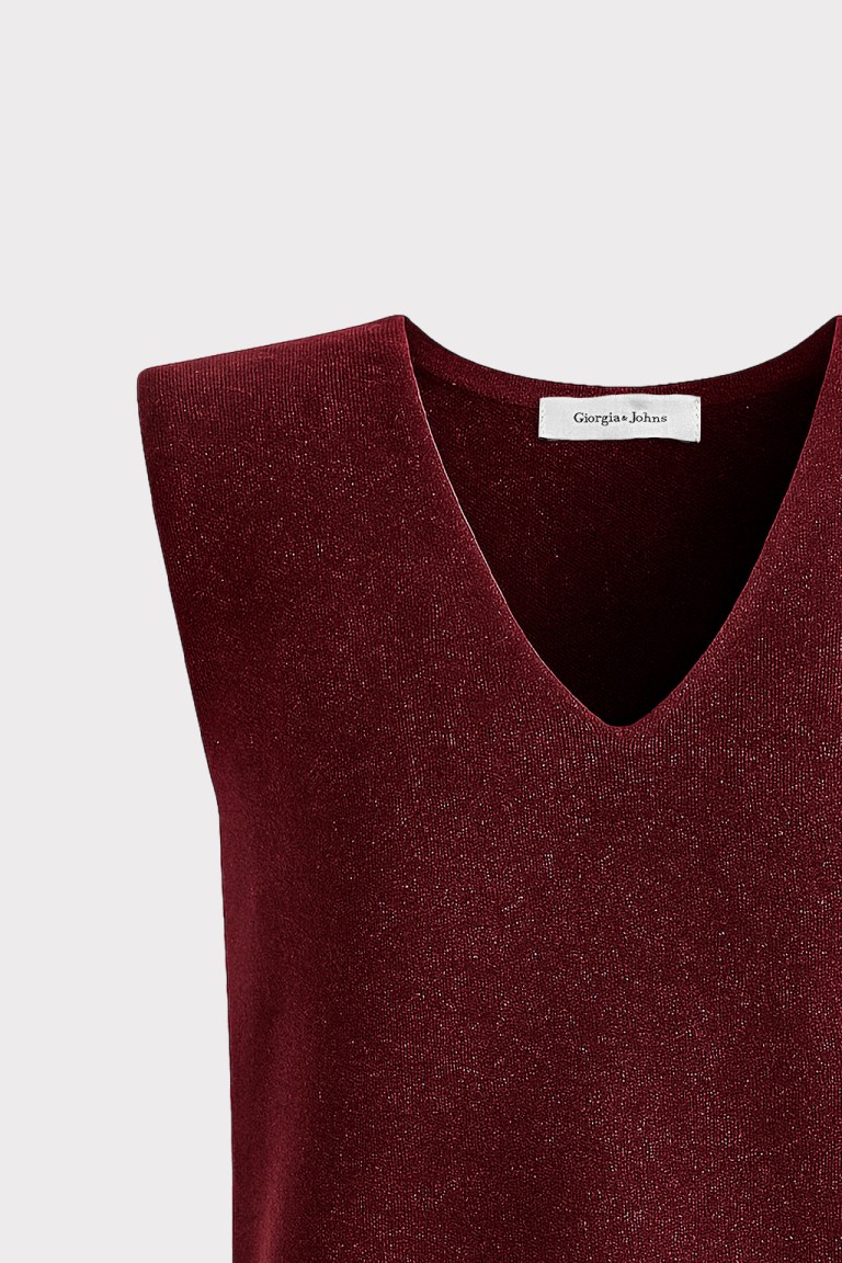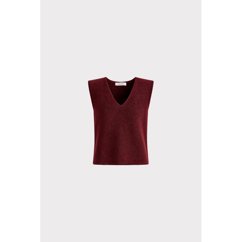 Top smanicato in maglia elasticizzata, scollo a V che slancia la figura. Versatile e senza tempo, è il capo ideale per creare layering ricercati sopra bluse e camicie, perfetto dal lavoro allaperitivo